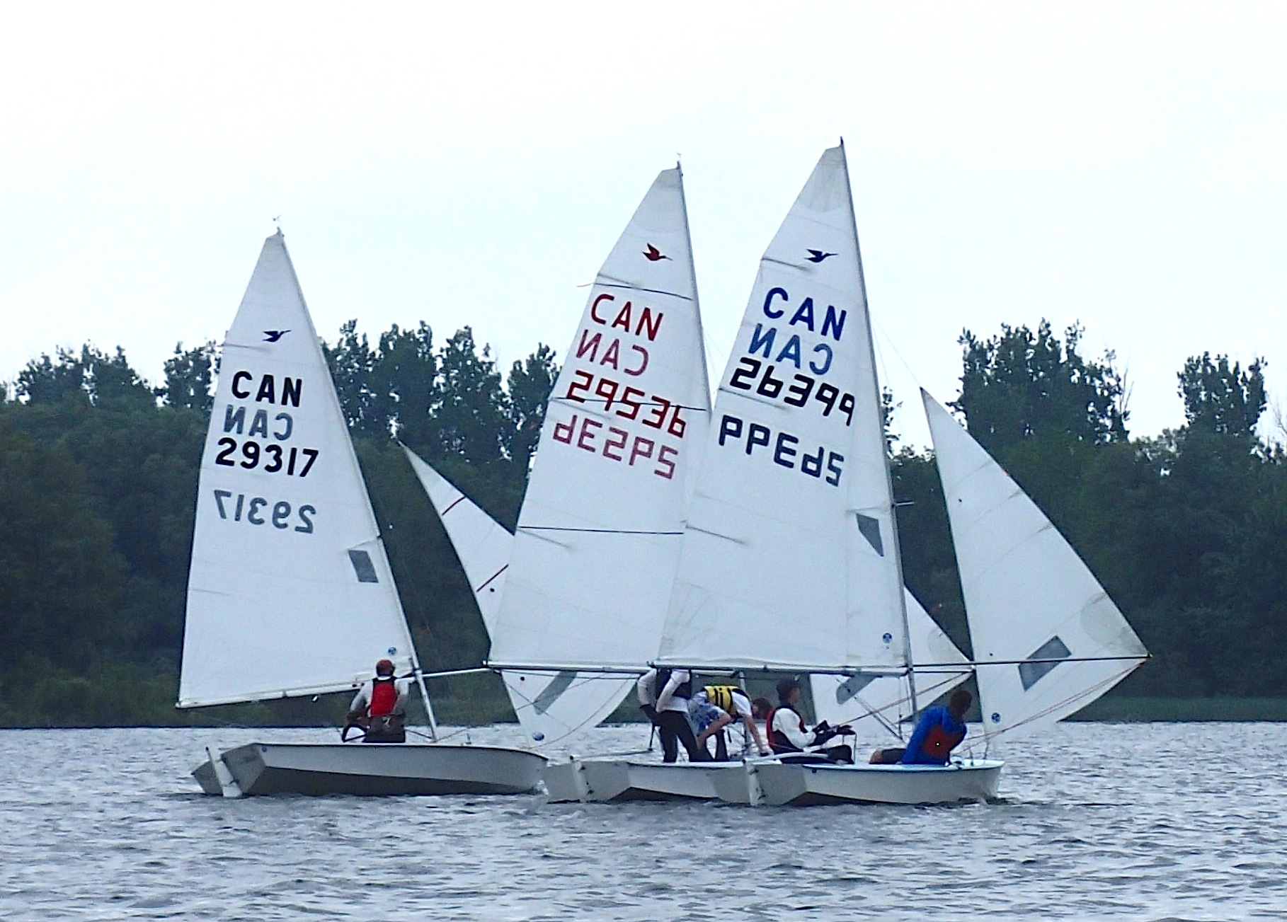 With three of the teams being juniors, this regatta was also the first in awhile Canadian Junior Championship. Leo Arseneault and Gordon Milley sailed convincingly to that title. Leo also had the highlight of the regatta with a cheeky but brilliant port tack start in the sixth race.